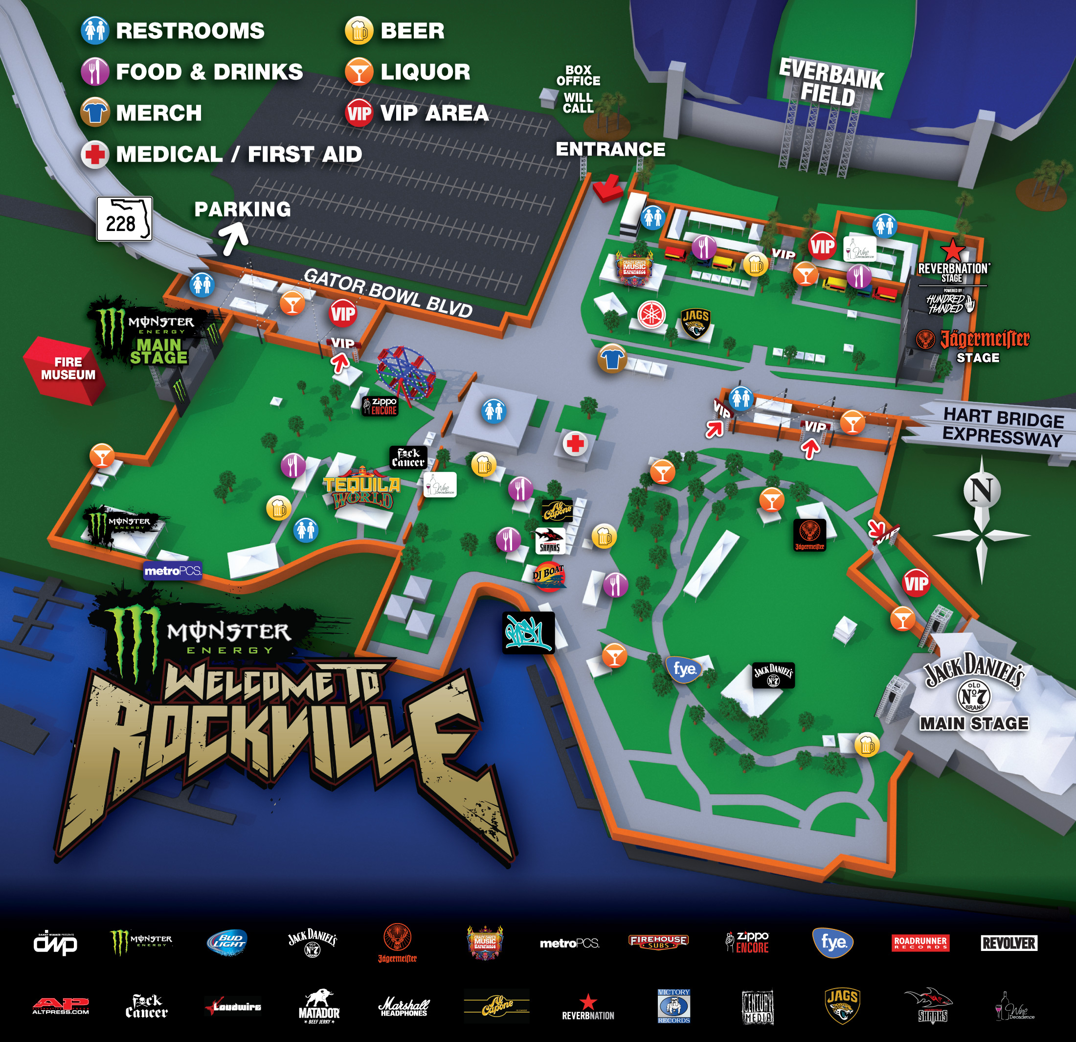 Metropolitan Park offers a scenic, spacious site for Monster Energy Welcome To Rockville that's just a few hours drive from cities including Orlando, Tampa, Gainesville, Savannah and Tallahassee, and is easily accessible by plane from around the country. Metropolitan Park is a premier 27-acre recreational facility along the beautiful St. Johns River in downtown Jacksonville, Florida at 1410 Gator Bowl Blvd.