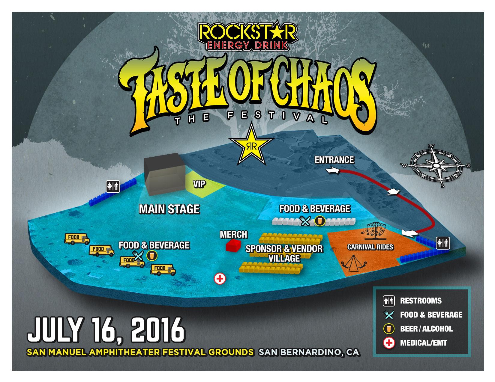 The Rockstar Energy Drink Taste Of Chaos Festival will also include food trucks, craft beer, carnival rides, a vendor village and more. General admission and VIP tickets are available for purchase now at http://festival.tasteofchaos.com/.